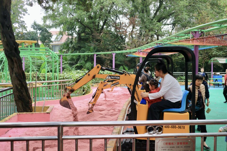 クレーン車で砂を上げ下ろしするというアトラクション。